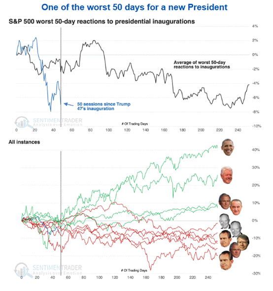 the 50 days following inaugurations, stocks continued to struggle.